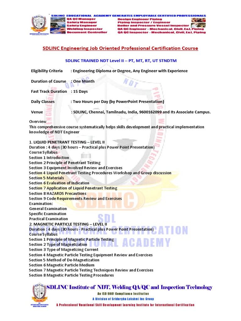 Sdlinc Engineering Job Oriented Professional Certification Course Pdf Radiography Ultrasound